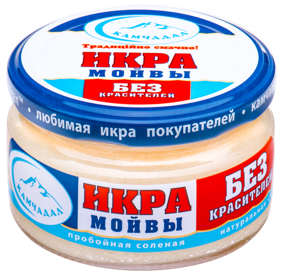 Продукт ікра мойви Камчадал 180г багатий білком і корисними жирами, що включають насичені і ненасичені жирні кислоти; вуглеводів зовсім мало. Є вітаміни: А, Е, С, D, але найбільше групи В; мінерали: кальцій, калій, натрій, цинк, магній, мідь, марганець, селен, фосфор, залізо та ін. Регулярне, помірне вживання ікри сприяє омолодженню шкіри, покращує процес кровотворення і роботу нервової системи, зміцнює кісткову тканину, перешкоджає накопиченню в крові « шкідливого »холестерину, підвищує витривалість організму – зокрема, корисна спортсменам, підліткам і літнім людям; відновлює знижену статеву функцію.