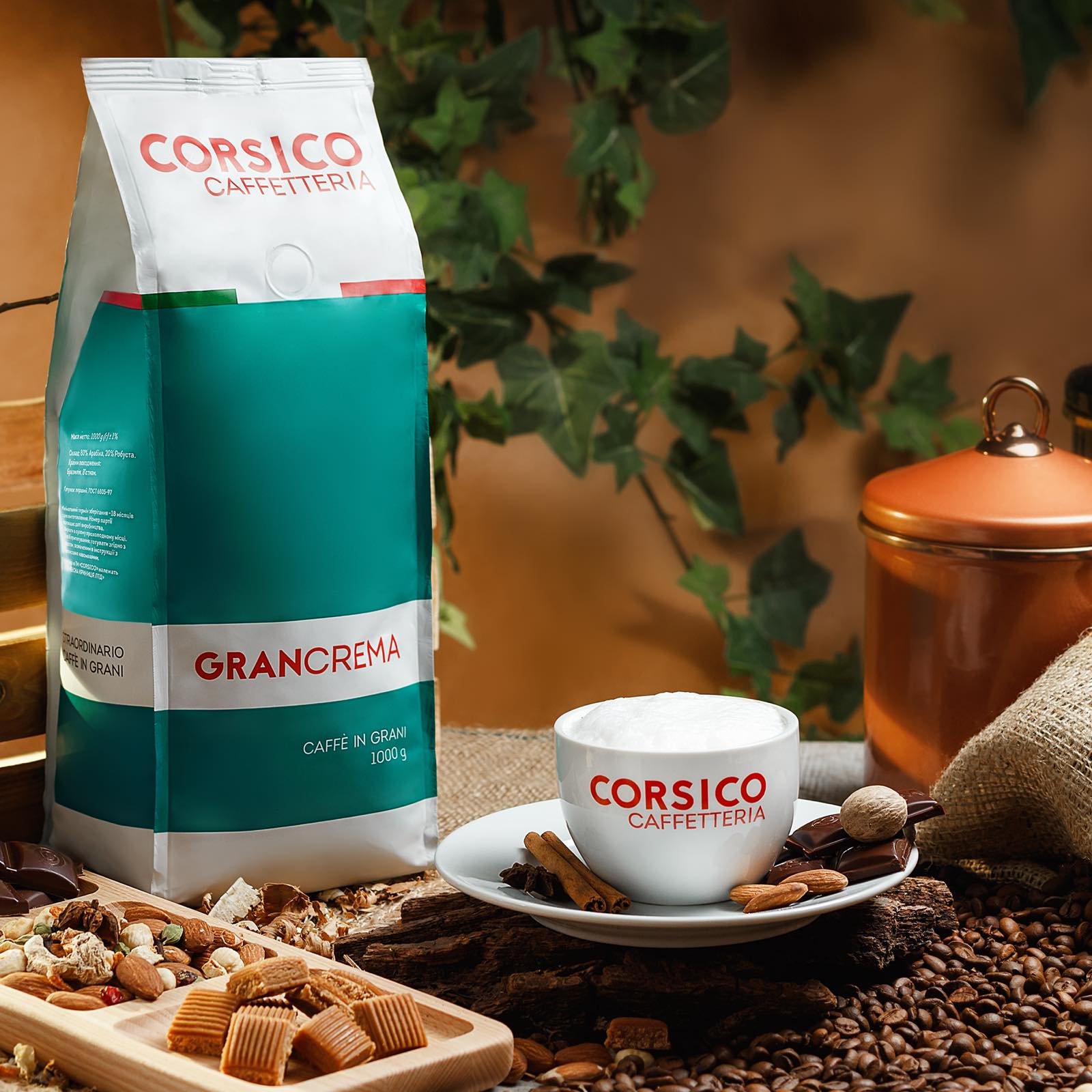Переважання солодкого м’яко підкреслено легкою гіркуватістю. Кислотність середньо-низького рівня, терпкість практично не відчувається. Кава має аромат складного і делікатного, з натяками темного шоколаду, ванілі, димної ноткою, з тривалим, обволакивающим і дуже витонченим смаком. Corsico Gran Crema складається з 80% Арабіки і 20% робусти.