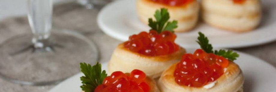 Кладемо в серединку кожного волована по невеликому шматочку вершкового масла. Зверху кладемо ікру. Прикрашаємо зеленню і відразу подаємо.